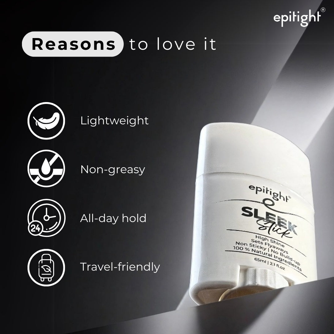 Unlike traditional gels or sprays, the Sleek Stick provides targeted application with no mess or stickiness.